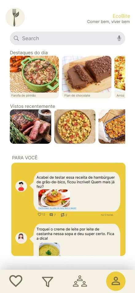 O EcoBite foi desenvolvido com o objetivo de incentivar uma alimentação mais sustentável e consciente. O aplicativo reúne receitas, ideias criativas, listas de aproveitamento e uma comunidade colaborativa, tudo pensado para ajudar o usuário a reaproveitar os alimentos que já tem em casa, reduzindo desperdício e tornando a rotina mais prática e ecológica.